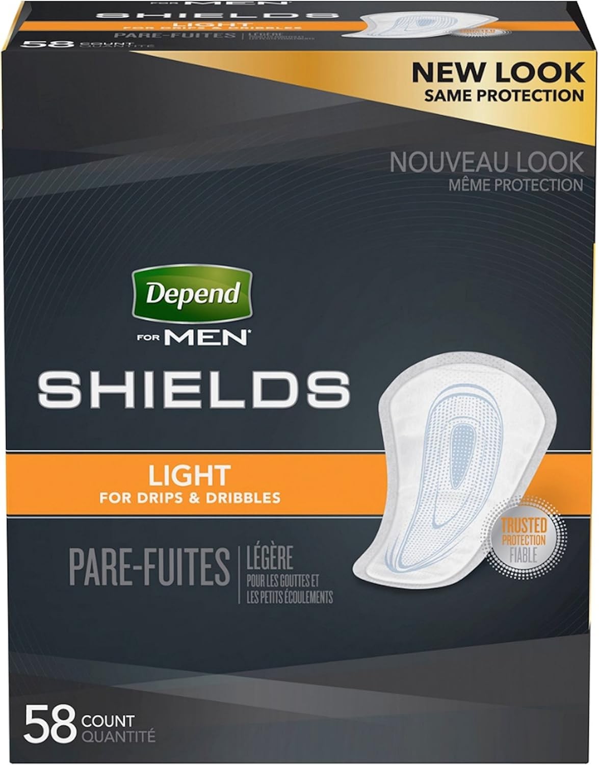 Men deserve an incontinence pad designed specifically for their bodies with protection that fits their lifestyle. Depend Shields Incontinence Pads for Men provide discreet and comfortable protection made for a man. Depend Shields underwear liners have light incontinence absorbency for drips and dribbles of wetness. These incontinence pads for men are ultra-thin and absorbent for protection that is shaped to fit a man’s body. Depend male incontinence pads use a strong adhesive backing that locks the Shield into your own briefs or boxer briefs. They should not be worn with boxers. Each Shield comes individually wrapped in a discreet-to-carry package. To use, peel off the Shield and adhere to the front of your underwear with the narrow end pointing down. Depend incontinence products are latex-free, lotion-free and fragrance-free. Depend Shields are one-size-fits-all and designed with a man’s body in mind. Product Form: Shield/guard Disposability: Do not flush Absorbency: Light Pad length: Regular Product Size: One size fits most Number of units per package: 58 Features: Disposable, Unscented, Leak Protection