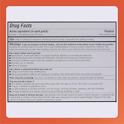 This is a great product. I tried another brand that had better adhesive but it was full of chemicals and one of the active ingredients was impossible to research. This nicotine patch works very well. The adhesive could be better but I don’t want better adhesion at the expense of not knowing what in creation they added to make the other brand stick so well. Also, the only active ingredient in these is nicotine. The other brand I bought indicated on the box that the active ingredient was nicotine but the insert had two more ingredients, one of which I could not determine what in the world it was. They made me feel very jittery and that lasted for 2 days from wearing one patch for 6 hours.