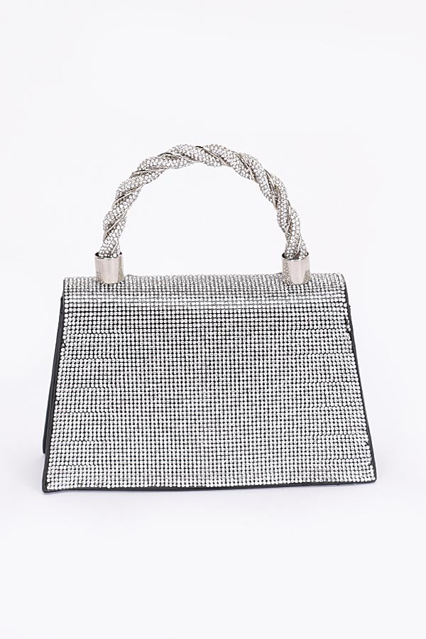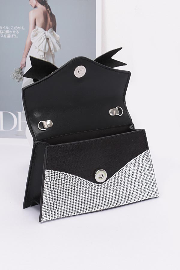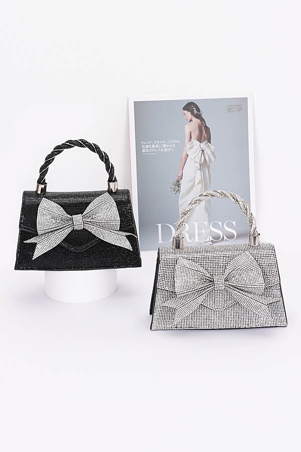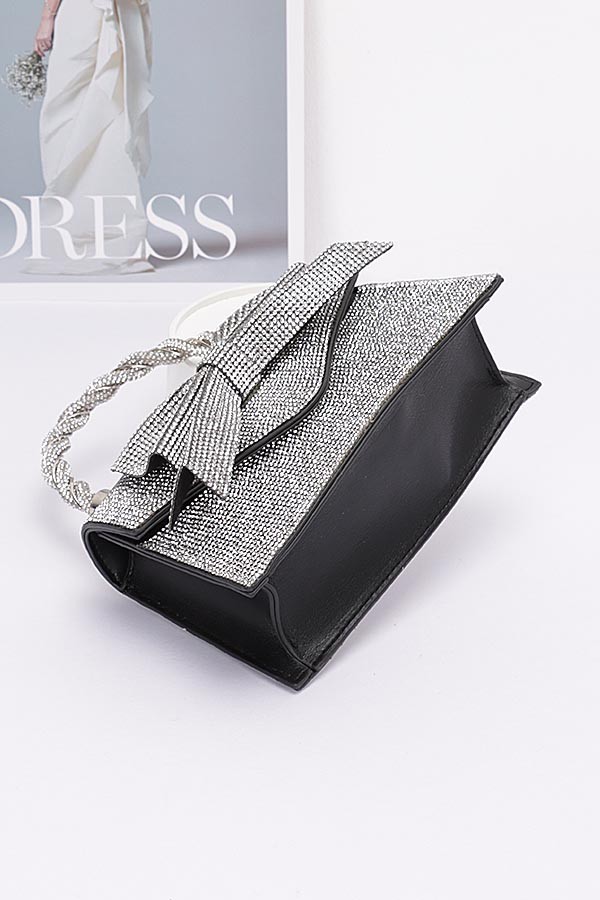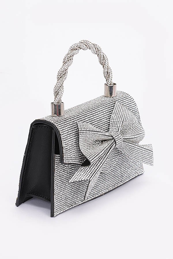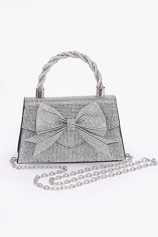 Elevate your evening look with this Rhinestone Ribbon Top Handle Flap Bag, a dazzling blend of glamour and sophistication. Adorned with shimmering rhinestones and finished with a chic ribbon detail, this structured flap bag adds instant sparkle to any outfit. The elegant top handle and detachable chain strap offer versatile styling—carry it by hand for a classy statement or wear it crossbody for effortless charm. Perfect for parties, weddings, or special nights out, this bag is your go-to accessory for a touch of luxury.