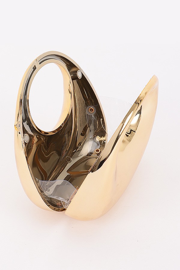 This is an Acrylic Mini Bag. Crafted from smooth acrylic material, it features a rounded, dome - shaped silhouette with a large circular cutout handle at the top, creating a modern and minimalist aesthetic. The bag comes with a detachable, delicate metal chain strap that allows for versatile carrying options---either handheld via the cutout handle or worn crossbody/shoulder with the chain. The acrylic has a high - gloss, reflective finish, enhancing its sleek and contemporary look. Ideal for adding a bold, fashion - forward statement to outfits, it suits occasions such as evening parties, cocktail events, or stylish city outings, pairing well with both casual ensembles and formal attire to elevate the overall look.